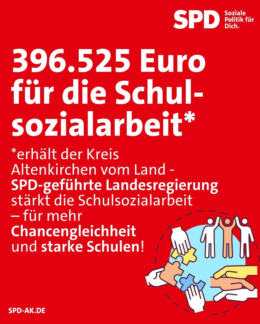 Gute Nachrichten für unsere Schulen im Kreis Altenkirchen: Das Land Rheinland-Pfalz unterstützt die Schulsozialarbeit im Landkreis Altenkirchen mit 396.525 Euro! Damit werden wichtige Projekte gefördert, die unseren Schülerinnen und Schülern direkt zugutekommen.