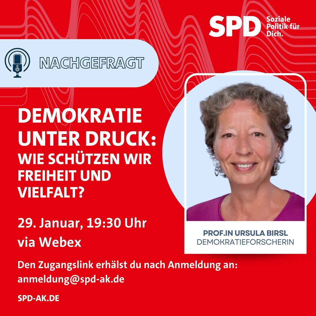 Herzliche Einladung zum Auftakt unserer neuen Veranstaltungsreihe „Nachgefragt!“ mit dem Thema: Demokratie unter Druck – wie schützen wir Freiheit und Vielfalt?