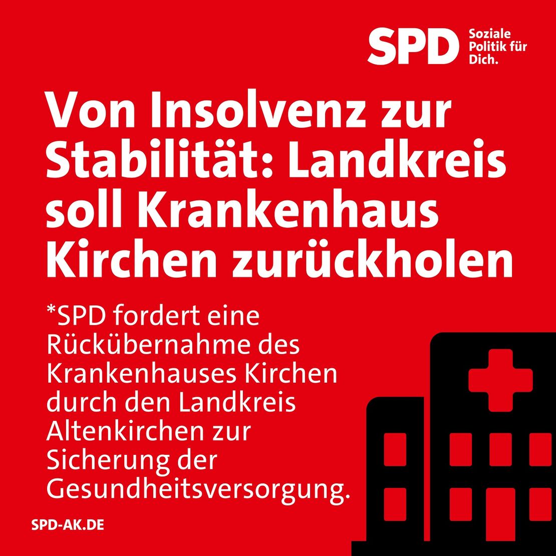 Wir brauchen ein klares Signal: Der Landkreis übernimmt Verantwortung und sichert die stationäre Versorgung für alle Menschen im Kreis Altenkirchen. Es geht um die Gesundheit vor Ort!