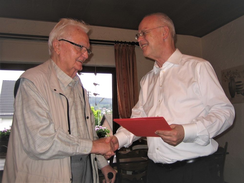 Rudolf Scharping (rechts) gratulierte seinem politischen Weggefährten Wolfgang Frank für 60 Jahre Treue zur SPD.
