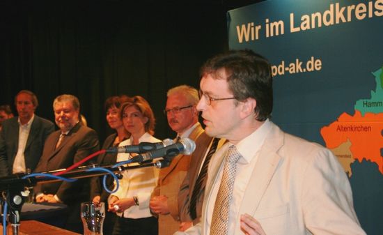 Der SPD-Kreisverband hatte zum Bürgerempfang mit Kurt Beck (2. von links) eingeladen.Zum Bürgerempfang mit dem SPD-Landesvorsitzenden, Ministerpräsident Kurt Beck, hatte der SPD-Kreisverband in die Altenkirchener Stadthalle eingeladen. Matthias Krell, Kreisvorsitzender, begrüßte die zahlreich erschienenen Gäste, darunter die Europa-Kandidaten Jutta Steinruck und Norbert Neuser, und gab für die Kommunalwahl die Devise vor, neue Mehrheiten im Kreis zu schaffen.