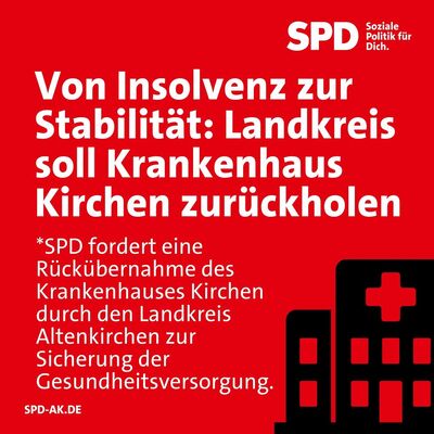 Das Krankenhaus in Kirchen ist systemrelevant, um die stationäre Gesundheitsversorgung im Kreis Altenkirchen sicherzustellen. Ohne das Krankenhaus droht der Region ein massiver Versorgungsengpass. Deshalb fordert die SPD-Fraktion: Der Landkreis muss handeln und das Krankenhaus übernehmen – mit einem Managementvertrag für den operativen Betrieb.
