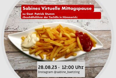 Im August wird es im Format der „Virtuellen Mittagspause“, das monatlich durch die heimische Landtagsabgeordnete Sabine Bätzing-Lichtenthäler via Instagram angeboten wird, um den Tierschutz gehen. Mit Patrick Stumm, Geschäftsführer der Tierhilfe Erfolgreich Umgetopft, wird sie darüber sprechen wie sich Tierschutz im Alltag gestaltet. Den meisten Menschen liegen Tiere, besonders Haustiere, am Herzen, doch wie geht es Tieren die alt sind oder Makel aufweisen und kein Zuhause mehr finden? In Pandemiezeiten haben sich viele Menschen Haustiere angeschafft um dann festzustellen, dass sie mit den Tieren überfordert waren. Infolgedessen wurden viele dieser Tiere in Tierheime abgegeben, bis diese an ihre Kapazitäten kamen. Wie kann diesen und anderen Tieren die auf den Menschen angewiesen sind geholfen werden?